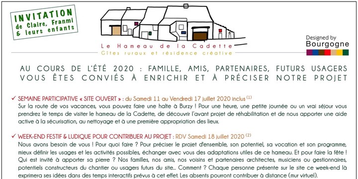 Eté 2020 : invitation à préciser le projet du Hameau de la Cadette