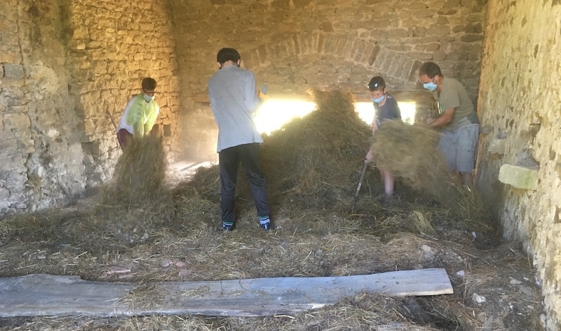 De nombreux bras se sont associés pour évacuer le foin et faire émerger de nouveau la sensation d’espace du lieu.